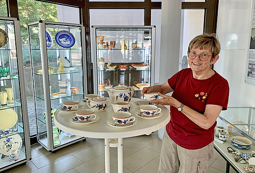 Helga Katrin Stano betreut die Steingutsammlung des Rathauses. Sie lebt zwar seit 55 Jahren in München, mit ihren vielseitigen Interessen hat sie damit aber auch in Schwarzenfeld ein interessantes Betätigungsfeld gefunden.