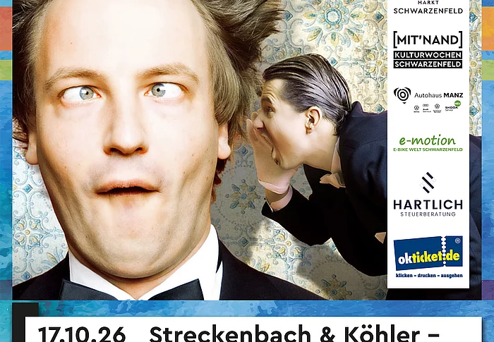 Ein Duo, wie es kaum ein zweites gibt! Tenor André von Streckenbach und sein Vasall Köhler bieten ein urkomisches Programm aus Comedy, Musik und Parodie. Am 17. Oktober 2026 in Schwarzenfeld.