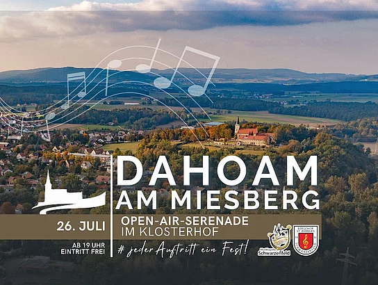 SOMMER – SONNE – Dahoam am Miesberg. Openair-Serenade im Klosterhof. Für mehr Infos auf die Überschrift klicken!