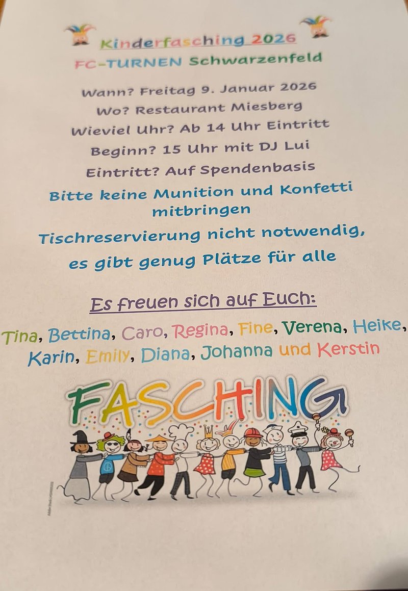 Kinderfasching 1. FC Schwarzenfeld Turnen