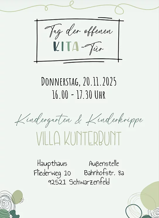 Villa Kunterbunt Schwarzenfeld, Fliederweg 10 und Bahnhofstr. 8a