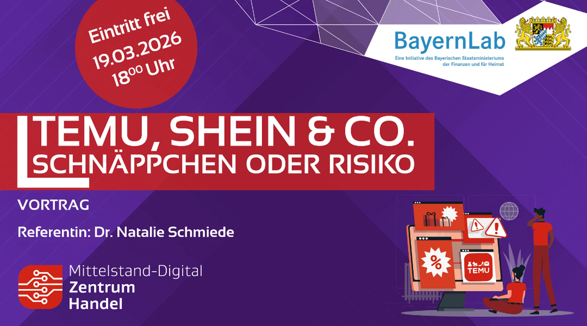 Das BayernLab Nabburg lädt am 19.03.2026 um 18:00 Uhr zu einem kostenfreien Vortrag zum Thema „Temu, Shein & Co – Schnäppchen oder Risiko?“ ein.