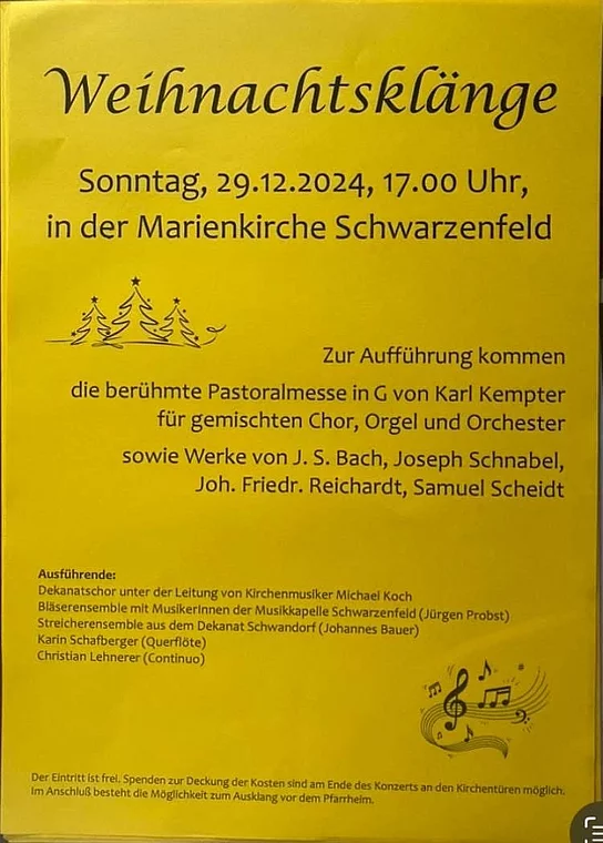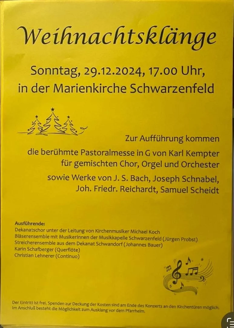 Weihnachtskonzert des Dekanatschores mit der berühmten Pastoralmesse in G Dur von Karl Kempter für Soli, Chor und Orchester.