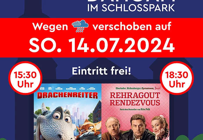 Open Air Kino im Schlosspark am 14. Juli 2024 (NICHT AM 12.7.) mit zwei Filmen bei freiem Eintritt