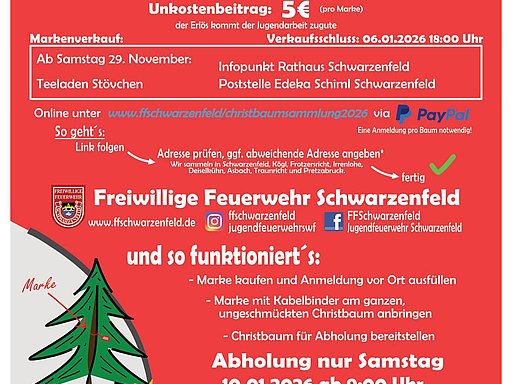 Christbaumsammelaktion am 10.01.26. Der Erlös kommt der Jugendfeuerwehr Schwarzenfeld zugute.