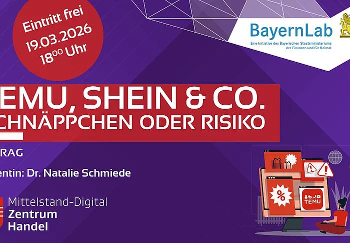 Das BayernLab Nabburg lädt am 19.03.2026 um 18:00 Uhr zu einem kostenfreien Vortrag zum Thema „Temu, Shein & Co – Schnäppchen oder Risiko?“ ein.