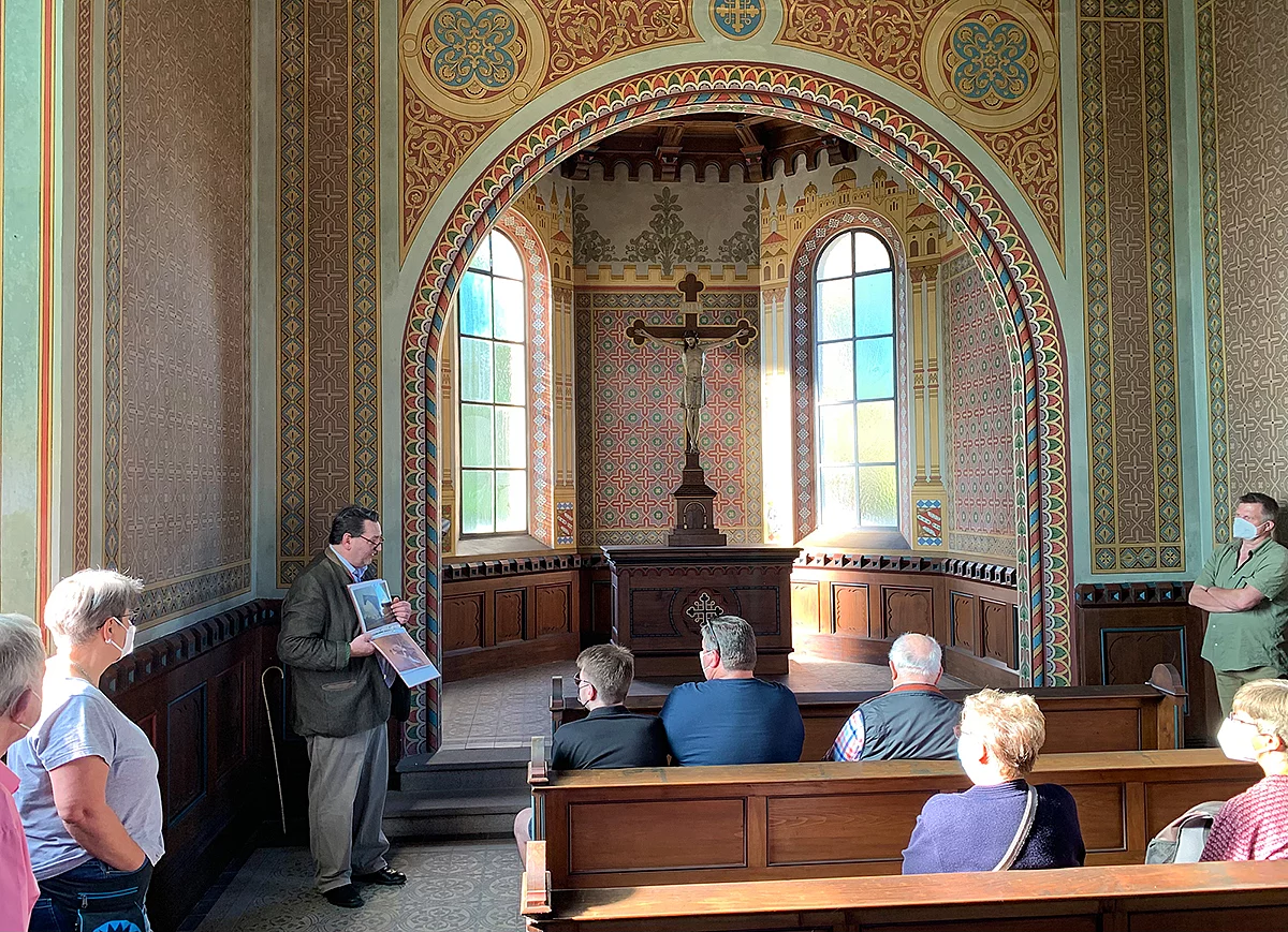 Die Kapelle über der Gruft ist einzigartig in der Oberpfalz. Die Wände sind reich verziert mit Ornamenten und orientalisch wirkenden Phantasiestädten, die an das altchristlich-römische Abendland erinnern. Die Wappen der Familien Holnstein und Gumppenberg verweisen auf die Ehe des Grafen Max von Holnstein mit Maximiliane Freiin von Gumppenberg-Pöttmes. Bei dieser außergewöhnlichen Ausstattung erkennt man die Künstlerhand des berühmten Architekten und Kgl. Oberhofbaurats Julius Hofmann, der auch für den Kaiser Maximilian von Mexiko und für König Ludwig II. von Bayern tätig war. Die Ahnengruft neben dem Mausoleum schmückt ein großes Granitkreuz auf einem schroffen Brocken aus Muschelkalkstein. Diese Grabstätte hatte der Kgl. Bayer. Oberststallmeister Max Graf von Holnstein aus Bayern für seine Vorfahren errichten lassen.