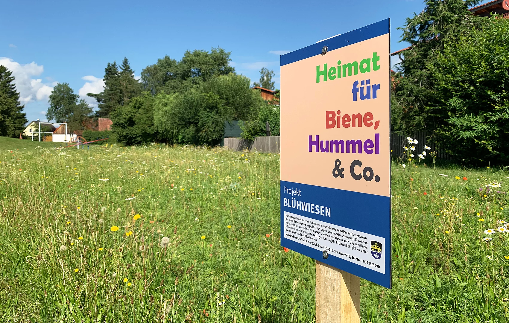 Aufmerksamen Spaziergängern und Anwohnern wird es aufgefallen sein: An mehreren Standorten in Schwarzenfeld sind Oasen für Bienen, Hummeln, Schmetterlinge & Co entstanden. Es sind die Flächen des Projekts "Blühwiesen", die Heimat für die lebenswichtigen Insekten sind. Das im Frühjahr 2021 gestartete Projekt ist Teil der Initiative "Schwarzenfeld blüht", unter deren Mantel mit verschiedenen Projekten die Biodiversität und der Artenreichtum im Bereich der Grünflächen des Marktes nach und nach gesteigert werden sollen. Im September 2021 kam mit dem Staudenbeet beim Friedhofseingang an der Viktor-Koch-Straße ein zweiter Baustein zum Projekt hinzu. Weitere Projekte für die kommenden Jahre, wie ein Sortenerhaltungs- bzw. Streuobstgärten befinden sich in der Planung.