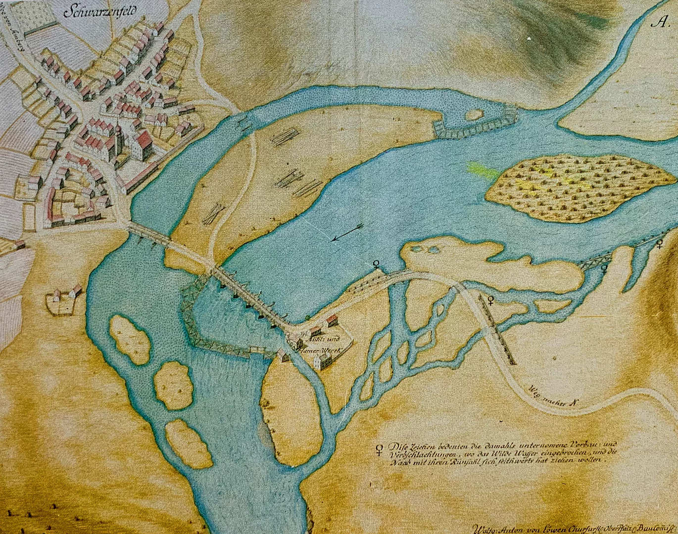 1765 wurde die Holzbrücke durch Eisstoß völlig vernichtet.