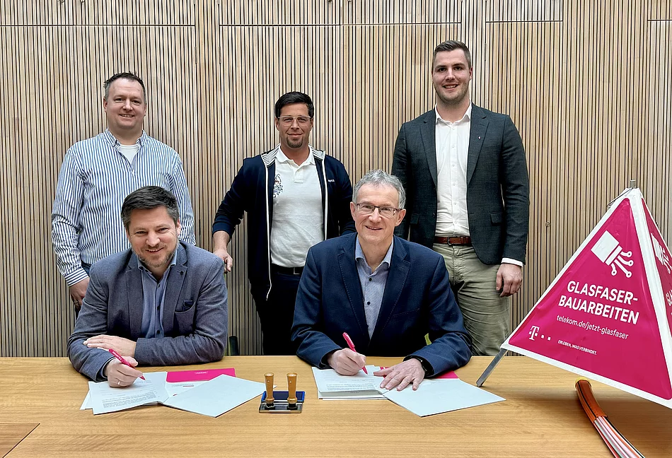 Vertragsunterzeichnung bringt den Glasfaser-Ausbau in Hohenirlach und Sonnenried auf den Weg. Der eigenwirtschaftliche Ausbau der Deutschen Telekom für alle anderen Ortsteile und den Hauptort Schwarzenfeld war bereits 2023 auf den Weg gebracht worden.