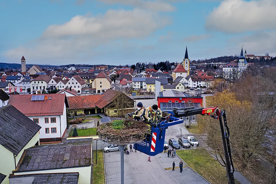 Feuerwehr und THW reinigen Storchennest