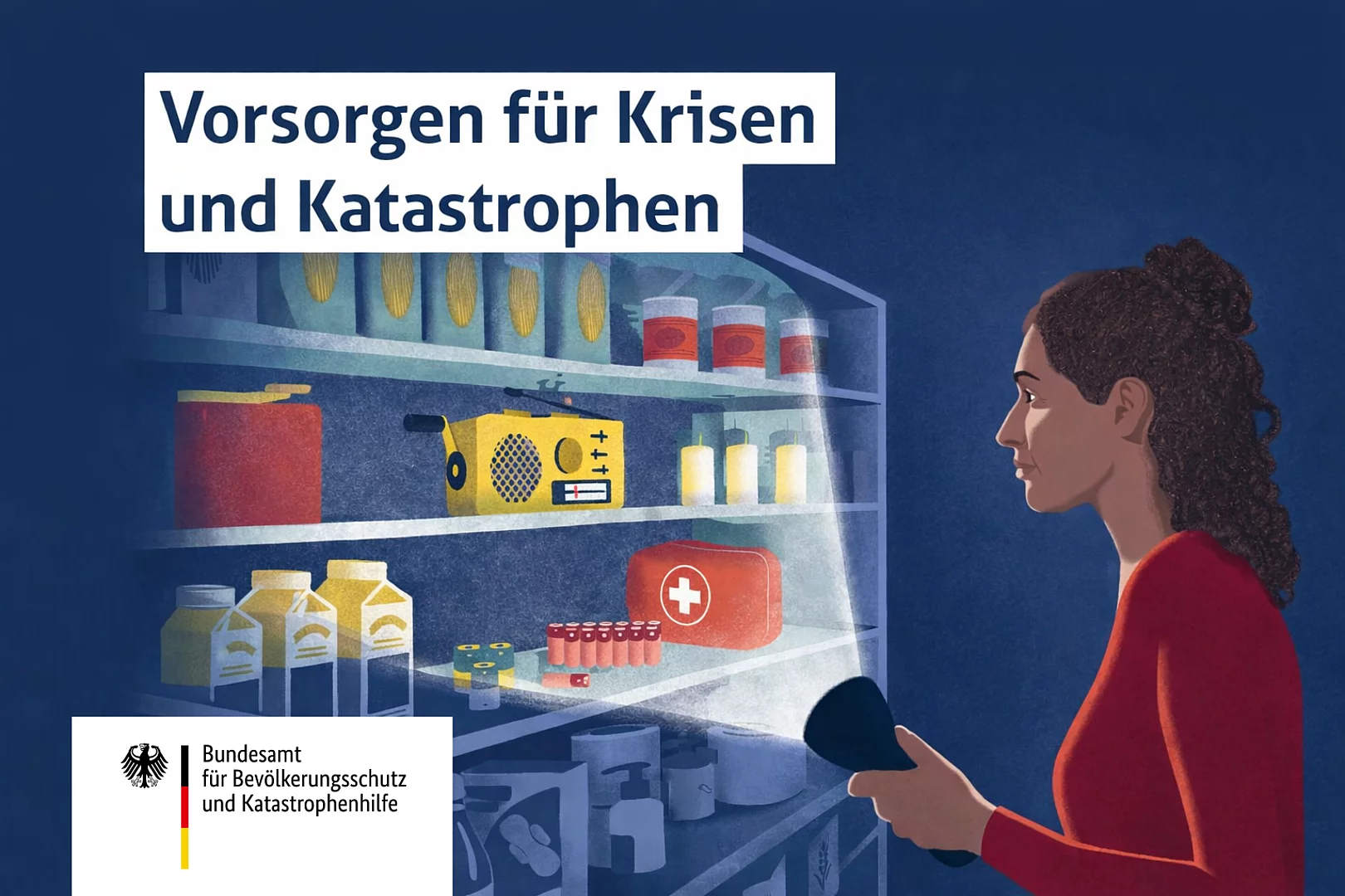 Deutschland ist eines der sichersten Länder der Welt. Dennoch erleben wir, dass auch in Deutschland Krisen unsere gewohnten alltäglichen Abläufe stören. Aktuelles Beispiel ist ein mehrtägiger großflächiger Stromausfall in Berlin im Januar. Durch Cyberattacken, Desinformation oder Sabotage finden Angriffe auf Infrastrukturen, Meinungsbildung und Zusammenhalt statt. Extreme Wetterereignisse nehmen wegen des Klimawandels zu. Wenn etwas passiert, ist es besser, vorbereitet zu sein. Das Bundesamt für Bevölkerungsschutz und Katastrophenhilfe (BBK) hat einen grundlegend überarbeiteten Ratgeber „Vorsorgen für Krisen und Katastrophen“ nebst praktischen Checklisten veröffentlicht. Der Ratgeber ist kostenlos im Rathaus erhältlich und fasst Vorbereitungs- und Handlungsempfehlungen für verschiedene Notsituationen zusammen. Er zeigt auf, wie man sich in einfachen Schritten auf mögliche Unterbrechungen des Alltags oder Krisen vorbereiten und diese meistern kann. Eins vorweg: Haushalte sollten sich möglichst 10 Tage selbst versorgen können. Das bedeutet: Wasser und Essen, medizinische Versorgung und Hygiene für den Notfall sicherzustellen. Aber auch ein Vorrat für zumindest 3 Tage hilft schon sehr. Darauf können Sie schrittweise aufbauen.
